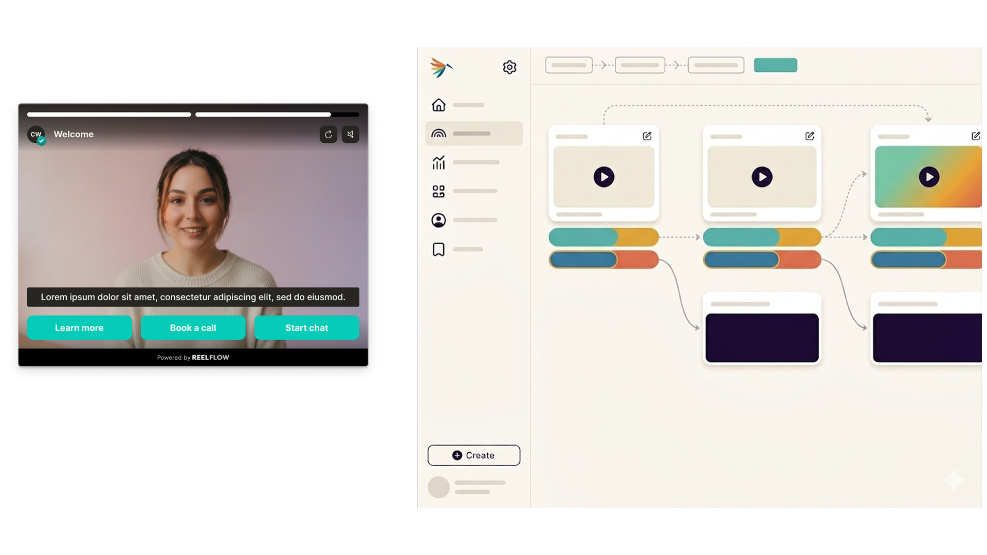 You don't need a film crew to build trust. Record and upload your videos, and add to your interactive flows in minutes. Need help? Explore our video marketplace or upgrade to our AI Video Stand-In feature.